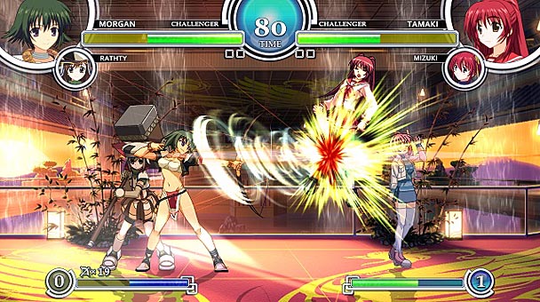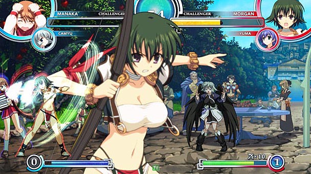Visually, the title’s collection of playable characters and supporting partners exhibit a respectable amount of animation. Although the number of individual frames may pale when placed beside competitors, each sprite is charmingly drawn and thoroughly expressive. AquaPazza’s backgrounds deserve recognition for creativity, set in venues such as a J-pop concert, comic convention, and picnic where a giant crab is being boiled. Musically, the game’s arrangements are invigorating, but not quite memorable enough to warrant a separate soundtrack release.
