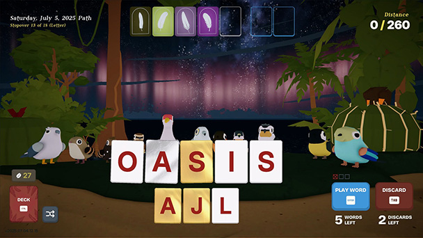 What sets Birdigo apart from other word games is its perk system, known here as “feathers.” These grant bonuses that can shape your playstyle. Some feathers might reward short words or specific constant combos. Others incentivize words with an even or odd number of letters. Choosing the right combination or perks becomes crucial, as different birds have different tile sets and their own distinct sets of perks. Most interesting, these bonuses mean that creating the longest word possible from your letter tiles isn’t always the best strategy.