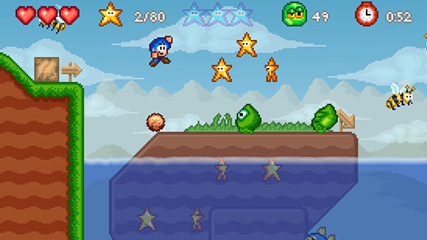 First, the good news. You’ll get a lot of gameplay for a modest price. With five worlds each comprised of a dozen stages, you’ll be hopping and bopping for quite a while. Certainly, the game’s control scheme is commendable, with the eponymous lead able to lithely double-jump and land with pixel precision. Then, there’s the inclusion of six different goals for each level. If you’re a completionist, you’ll revisit levels to speedrun through them, collect two different types of stars, eliminate every enemy, snag a red balloon, or even complete them with complete health. But those irked by repetition will find the pursuit of these objectives to be a shifty way to pad the game’s playtime.