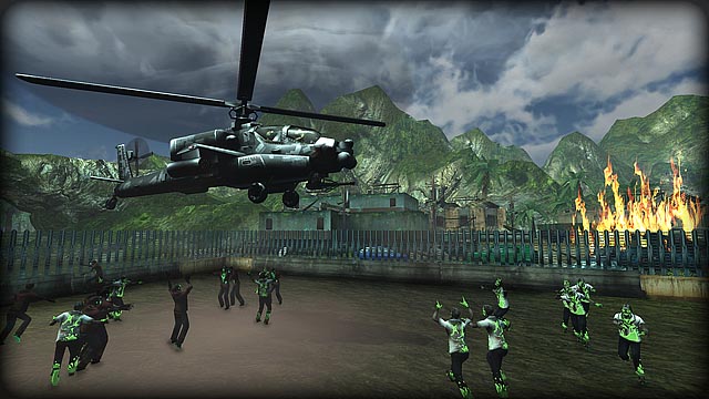 As my colleague Sean explained, Choplifter HD proficiently updates Dan Gorlin’s serendipitous adaption of Operation Eagle Claw. Use of the Unreal Engine has allowed developer inXile Entertainment to craft a series of busy battlefields which capably straddle the space between whimsical sandbox recreation and gritty theatre of war. In one stage, players soar imperviously above undead mobs, using the chain gun to take occasional pot-shots, until a touching down instigates a sense of genuine menace. Although chatter from the game’s pilots and P.O.W.’s often seems to be voiced by amateurs, sporadically a comical line is capable of producing a chuckle, and helps to offset the drone of whirling rotor blades and the persistent salvo of explosions. Whereas most of Choplifter’s follow-ups have preserved the simple taxiing of the original game, this revitalization throws an ever-shifting tide of objectives at players. One moment players a playing watchdog for a cluster of civilians, the next they are prioritizing the transport of mortally wounded against an ever-dwindling fuel supply.