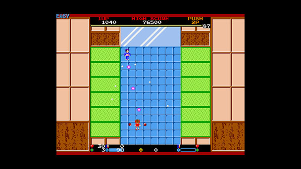 Play on the game’s higher difficulty settings, and you’ll often be tempted to fly into a cloud of bullets in order to snag a large peach. Sure, you might lose a few health points in the process, but it should still be a net gain. As such, assessing danger and the management of health is just as important as quick reflexes as you make your way through the game’s eight stages. Challenge stems from discerning clusters of enemy bullets from collectables; both are small are circular.
