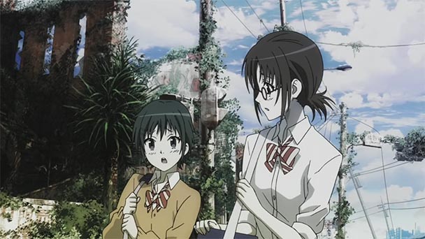 Undoubtedly, some of Coppelion’s transgressions stem from the adaptation of its source material. In order to endow the anime with a vigorous pace, the series attempts a sizeable adaptation of Tomonori Inoue’s manga, with the thirteen episode season covering the first eighty chapters of the original work. As such, inference is required from viewers, while other confounding elements have the tendency to be explained later in the series. More likely to break immersion are the occasional disruptions of character behavior. Quite frequently, tears will spontaneously erupt from one of girls, while the anime’s sole romantic component receives a modicum of foreshadowing.