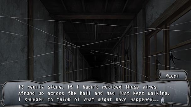 Whereas the original Corpse Party used RPG Maker to depict Heavenly Host in an overhead perspective incorporating sprites and bitmaps, Book of Shadows uses a different method. Dialog is conveyed via visual novel textboxes and character portraits, while navigation uses a point-and-click based scheme. While this permits the game to offers a character’s point of view, there are some design decisions that may irritate players. Moving from room to room is easier now, with a button or mouse click relocating players to a new venue. But problems are rooted in a system that blocks progress until a certain event is triggered. Occasionally, you’ll have to wonder past points multiple times and since Book of Shadows always doesn’t drop clues, you’ll probably have to consult a FAQ once or twice.