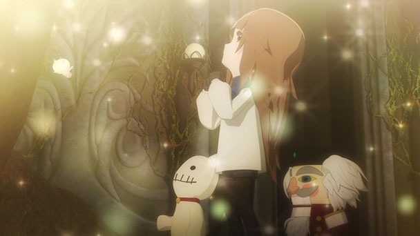 Initially, the characters who live with Alice and Deemo at the bottom of this chasm offer little more than comic relief. Gradually, the film gives each character a bit of development and they become more endearing, with the stuffed cat Mirai given a speaking part for this adaptation. But the best addition is the all-new framing story that reveals Alice in a high school setting, as fellow students and an instructor offer compassion.