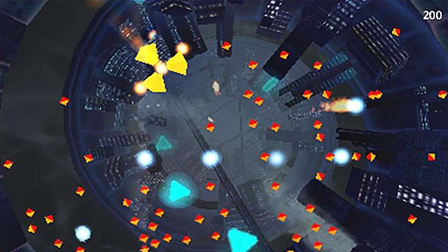 Fortunately, the game’s vibrant visuals make the most of the 3DS hardware. Powerups flow though 3D space, enemy bullets flow in pinwheel patterns, and backdrops pulsate and gyrate with exuberance. Occasionally, the scenery becomes a bit too frantic, momentary obscuring the player’s agenda, although even deeper concentration can assist gamers through these moments. Sonically, the electronic beats complement the game’s abstract graphics, offering a eccentric mix which doesn’t sound muted when listening with headphones.