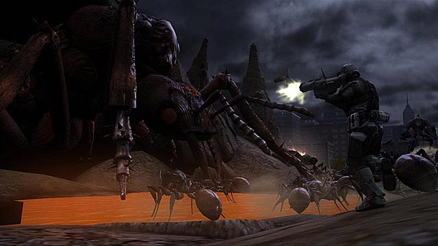 I’ll be the first to admit it; when I’m wrong, I’m wrong. Earth Defense Force: Insect Armageddon did not impress me when I first saw it at E3; I thought it was overly simplistic in both controls and plot, and the lack of complexity left me yawning. You may recall DesertEagle reviewed the 360 version midway through 2011, and he tried to impress upon me that it wasn’t the bore-fest I believed it to be. Having now played the PC version, I have to agree that I was mistaken. You play the hero in a Starship Troopers-esque squad and you mow down bugs, robots, and robot bugs as they threaten the city and screaming citizens. The game delivers satisfying explosions of insect guts and amusing dialogue from your fellow soldiers and operatives commander. Add in good graphics and an environment which is destroyable as well as pretty and you’ve got a decently enjoyable game on your hands.