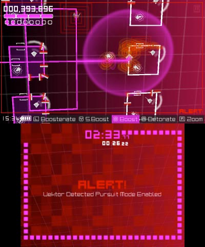 The game’s other gaffe exists in its control scheme. While a press of the right shoulder button allows players to see a larger view of the map, they are forced to hold the button down to maintain the perspective. Ideally, the escapeVektor would toggle between camera views, allowing gamers to keep their fingers fixated on offensive abilities. Veterans of the maze genre might wonder why Vektor doesn’t allow players to establish a direction before coming to a junction. Ever since Pac-Man, this has become the de facto method of maze navigation. As such, players can expect the infrequent errant turn before they learn to use dead ends as a technique to keep Vektor still.