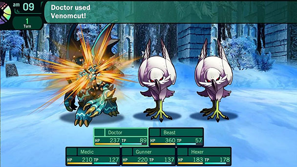 If you’ve tackled Etrian’s expeditions before, you might notice some visual upgrades. Save for some slightly pixelated ground textures, the general increase in visual fidelity is undoubtedly eye pleasing. During sequences such as combat, a map isn’t necessary, the collection enlarges the main window to fill the entire Switch screen. Instead of looking like a grainy relic from the turn of the millennium, the upscaling resembles art drawn at native resolution. Coupled with Yuji Himukai’s (Fire Emblem Heroes, A-Train All Aboard! Tourism) exceptional character designs and Shin Nagasawa’s (Bahamut Lagoon) creatively envisaged monsters, each Etrian entry shines. That’s especially true if you’re lucky enough to own an OLED Switch and can play in a darkened room.
