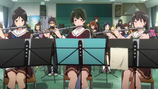 On the surface, Sound! Euphonium explores the myriad of tribulations faces during teenage life. The novel, manga, and anime center around members of the Kitauji High School Concert Band Club. Once a prestigious competitor for the national championships, the club failed to quality for several years. But their resigned attitude pivoted when Noboru Taki became the new advisor. Demanding fastidiousness from the students, the leader also extended autonomy, permitting each pupil to seize their musical strengths. The stance also produced several life lessons as well.