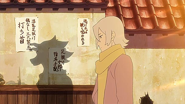 Considering Memoirs of a Huntress’ musings on nature, it’s not surprising that the anime exquisitely captures Edo amidst the Tokugawa period. The setting allows for a number of a juxtapositions, where Fukagawa’s merchants live alongside fauna-filled streams while the heart of Yoshiwara is alive with the commotion of courtesans and their prospective suitors. Numerous high-angle shots reveal the layout of Edo, with the sprawl of the city surrounding the shogun’s castle, revealing a picturesque beauty that’s rare even in Tokugawa-context anime. Complementing the films’ scenic arts is near-faultless animation that’s only undermined by the sporadic specter of CG hyper-sleekness. Character design is proficient, with rendering that occasional verge on exaggeration, if only to reveal facets of secondaries with limited screen time.