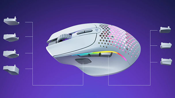 Undoubtedly, a carrying case with compartments would be beneficial given the Model I 2’s signature feature: swappable side buttons. By using a bundled implement that looks like one of a MicroSD/SIM ejection tool, you can easily swap out the mouse’s four side buttons with bundled replacement parts.