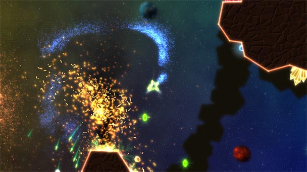 Ultra has received an audiovisual upgrade too: Whereas the old PS3 particle effects were “competent,” the Vita version has enhanced its jet exhaust and exploding detritus effects. Jetting through particles feels like dragging a finger through neon sand on a glass table. It’s quite fun to look at and to toy around with. Musically, I recommend turning the sound effects down a bit to emphasize the new music and really soak it in.
