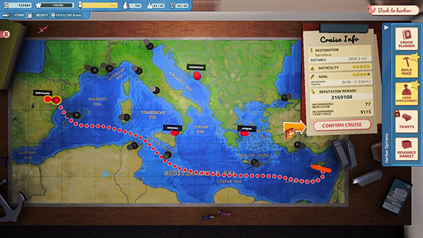 Sadly, Cruise Ship Manager doesn’t let you be a truly heinous executive, which can be a cathartic form of role-play. Instead, it adopts a fairly mannerly approach as you begin your managerial gig on one of three skill levels. The game’s tutorial will walk you through the different stages that need completion before you sell tickets and set sail.