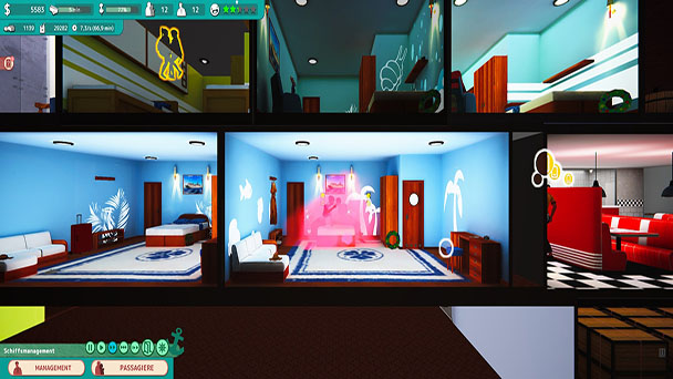 The crew is surprisingly adaptable in Cruise Ship Manager. After hiring a squad, you’ll probably place them in positions based on their pre-set strengths. But between worker burnout and never quite having enough space to room a full staff, constantly order your crew to different stations. Yes, it’s odd when the cook takes over captain duties. Hopefully, Image Power is making a point about intellectual malleability. Even if they aren’t, it keeps life at sea sufficiently hectic, as your VIP with an all-inclusive package soils his room habitually and you need to spare someone for clean-up duties.