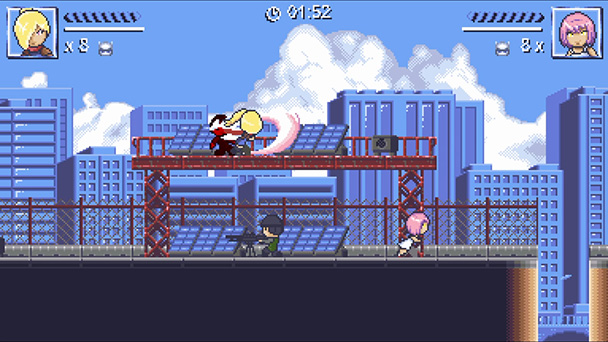 These issues aside, Infinite – Beyond the Mind undoubtedly delivers enjoyment. These type of action platformers are often let players live out power fantasies. And here, you’ll feel godlike, soaring over static soldiers and effortlessly carving them up, like a Hong Kong action film. Part of this feeling is cultivated because you can come in contact with foes with incident. The other part is a fairly lenient health bar that insures you won’t perish from one-hit deaths. Another high point is the game’s soaring, chiptune soundtrack. Sure, the melodies draw on those kind of mounting swells that are pervasive in anime and games. But Beyond the Mind’s song are often quite hummable, and when the cheery, end-of-level victory banner is completement by pixel-art depicting your destruction, the game soars.