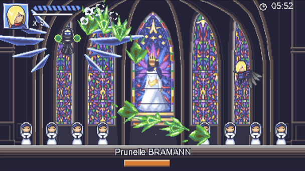 But Occitanie, France-based Emilie Coyo gets many of the rudiments right. Like the previously mentioned titles, Infinite – Beyond the Mind allows you to feel like a superhuman bad-ass. Whether you opt to play as pink-haired Olga or the blonde-coifed Tanya, you’ll be far more nimble and speedier than the legion of soldiers you’ll face. Both girls can double-jump over the heads of stupefied enemies. They’re armed with the same slash attack that can take almost all foes down with a few button taps.