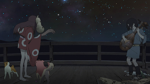 T-G: Traditionally, musicals offer a succession of short, two or three-minute songs. But Inu-Oh’s music is much closer to the structure of an epic and is similarly sustained. Can you explain the creative process behind Tomona and Inu-Oh’s songs?