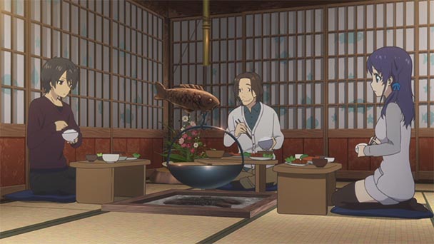 Few will find any reason to criticize P.A. Works (Hanasaku Iroha, The Eccentric Family) production. Sumptuously drawn, colored, and framed A Lull in the Sea’s characters and two milieus are consistently stunning. From the snow-like salt and swimming fish that adorn the Shioshishio sea village to the environmental changes to the land, nearly every frame of the anime demonstrations the studio’s infatuation with vivid hues and meticulously drawn replications of nature. Likewise, the anime’s soundtrack is equally as adept, offering every from plaintive piano melodies, stirring guitar-driven number to an exceptionally lush OP.