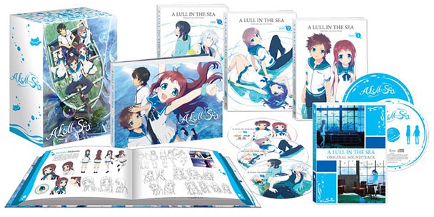 Although NIS America has routinely pulled out all the stops with their premium editions, A Lull in the Sea represents a new benchmark for the publisher. Removing the shrinkwrap off the cardboard housing reveals a number of exquisite details- like the shimmering, embossed adornments at the top of the box. Peering inside the container, purchasers will find a two-CD soundtrack with sixty tracks, as well as the series spread out across an additional three Blu-ray disks. Rounding out the collection is a seventy-six page hardcover book, which offers design art, episode synopses, and even commentary from Toshiya Shinohara, the anime’s director.