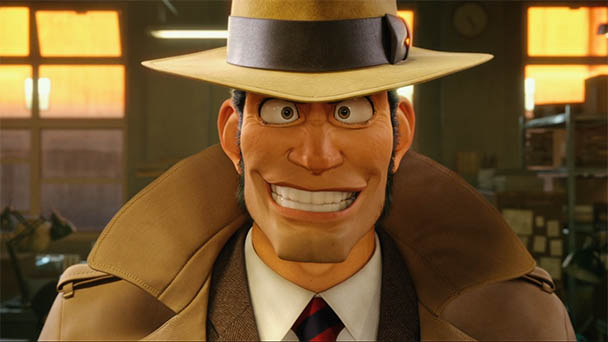 Instead, children should appreciate the way the film renders its cast. The First depicts Lupin in all of his rubber-faced glory, offering comical smirks and madcap looks of bewilderment. The exaggeration of facial expressions aren’t just comical, they make character’s emotions easy to read. Even newcomers unfamiliar with Inspector Zenigata will be able to take one look at his bending posture and wild eyes and understand he’s fixated on apprehending the thief.