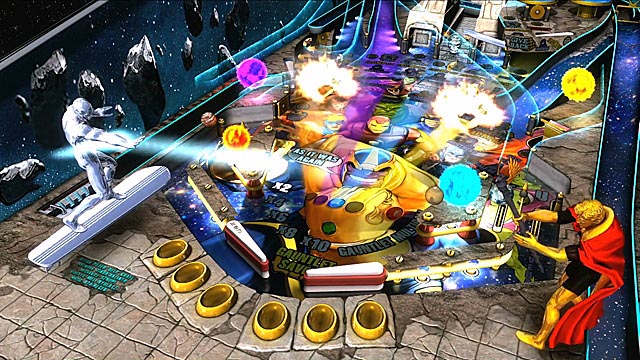 Rounding out the collection in The Infinity Gauntlet, which tasks heroes such as The Silver Surfer and Adam Warlock with defeating the Mad Titan, Thanos. Flaunting over 130 lines of dialog, the table reveals Zen Studios tacking a recurring weakness- substandard voice acting. Featuring a sufficiently passionate and bass-heavy delivery, Thanos continually taunts players with declarations right from the comic series, issuing up menacing warnings such as “Away from me, you clowns”. Imaginatively, each time players acquire one of the six Infinity Gem from the giant glove which loom over the playfield, Gauntlet delivers a different game-altering mechanic. With variants which range from inverting the state of flippers to flipping the entire table upside down, many of effects transcend the capabilities of actual pin machines. Hopefully, Zen Studios will prolong this trend- it would be a delight to see game which mirror the multiple tables and fantasy targets popularized by games such as Alien Crush, Devil’s Crush, Sonic Spinball or Adventure Pinball: Forgotten Island.
