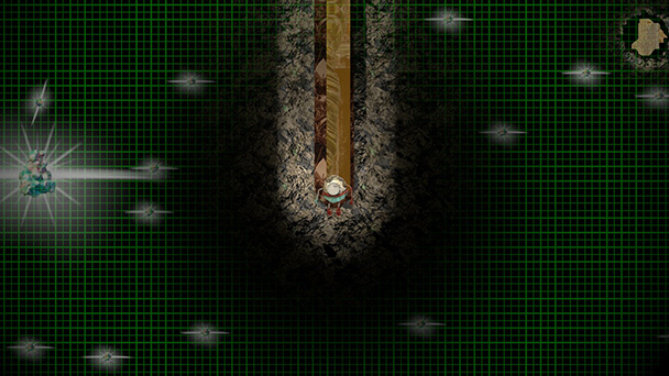 What makes Mashina distinctive is the way mundane tasks are managed. Instead of just drilling aimlessly, you can scan the area for rare materials. The process illuminates the area with a glowing green grid of translucent lines, resembling the look of an old, monochrome monitor. Any materials that are discovered are placed in your backpack, Tetris-style, as you attempt to maximize space. If you find a sizable deposit, you can even build a conveyer belt to transport resources back for automatic payment.