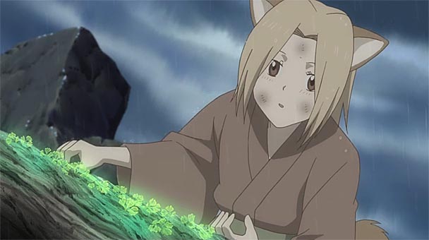 Prudently, the thirteen episodes in season three veer from the Book of Friends’ previous trajectory, spending more time on character development. As we learn more about Reiko, Natsume’s grandmother, viewers are forced to tweak their perceptions. Likewise, the episode entitled “In Young Days” briefly flashes back to Natsume’s childhood, revealing some of the traits that would later define the protagonist. There’s even a bit of foreshadowing- with one reoccurring character playing an even larger role in next season’s events. Most satisfying is seeing those around Natsume becoming more accepting of the adolescent’s eccentric behavior and an increase in the number of characters who share similar powers of perception. The season’s concluding episode, “Natsume’s Book Games” is particularly poignant- demonstrating the combination of melancholy, poignancy, and charm which fuels the series.