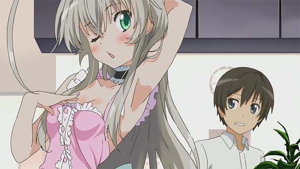 Subsequently, a number of other comic foils are introduced, such as a space alien known as Kuko, whose yuri feelings for Nyaruko result in resentment toward Mahiro, while Hasuta resembles a cute blonde girl that is actually a male, with yaoi feelings of his own. Collectively, these characters endow Nyaruko: Crawling with Love! with enough pervish permutations to fuel another season, forming a delightfully twisted love polygon with harem-esque undertones.