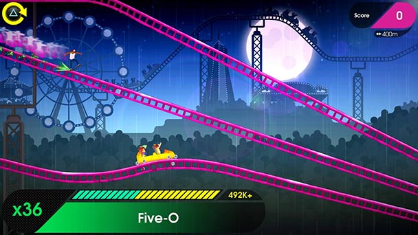 OlliOlli’s downhill jams brought back the focus on skating. Here, the exhilaration of chaining together strings of stunts wasn’t hijacked by awkward narrative or disconcerting marketing schemes. The game pitted players against a quintet of worlds, each containing five starting stages. Once those had been thrashed into submission, the game opened up an additional five levels to test the mettle of master boarders. Progression followed a tidy schedule where each subsequent zone incorporated previously gained expertise, generating challenge any only infrequent exasperation. When a skating run was irreversibly botched, a button press instantly restarted things, leading to gameplay sessions that could continue through the AM hours.