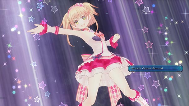 The other warning is that the title requires a familiarity with pop idol culture. The game’s prologue introduces us to Momoka, who as one of the game’s Verse Maidens, uses her singing ability to quell an encroaching evil presence known as the Blare. While she’s able to defeat the threat, exhaustion from the encounter indicates that she’s getting too old to remain a Maiden for much longer. Although conversations plumb this premise for amusement, Compile Heart occasionally uses the opportunity to scrutinize the pop idol craze. Momoka’s imminent retirement represents the fate of actual girls who are recruited into the music business and subsequently cast out before hitting their thirties. Wisely, that’s not the only element that’s explored, with Quintet delving into fan obsession and the consumption of related commodities. That said, Compile Heart never gets too critical, using a nonessential character to carefully balance skepticism with compulsive spectacle. After all, this is a game which permits players to choose their character’s wardrobe and even design music videos using an editing module similar to a component found in Hatsune Miku: Project DIVA series.