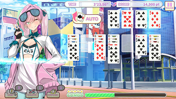 Pretty Boys Klondike Solitaire integrates a scoring system, which awards points every time a card is laid down on the foundations. Lay down a number in quick succession and you’ll earn a combo bonus, providing just a bit of incentive for replay. Pleasingly, as you near the end of a run, you can have the CPU automatically lay down the last remaining cards, resulting in a large point bonus. Additionally, there are online leaderboards that track both stage scores as well as completion times. Plus, there’s an indulgent gallery for admiring all the different portraits that you have unlocked.