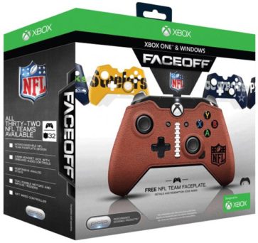 One slick solution can be found in Performance Design Product’s Faceoff, a controller that does double-duty, working on both Xbox Ones as well as Windows PC. Since it’s wired, you never have to worry about robbing helpless remotes for a pair of AA’s. What more, a corded connection nearly eliminates input lag, giving you the edge at the snap. What’s more, the Faceoff allows you to show your team spirit. The peripheral ships with a removal pigskin faceplate. But once players open up the package, they’ll find a redemption code allowing them to receive an additional plate for any of the NFL’s thirty-two teams. Pleasingly, PDP even covers postage.