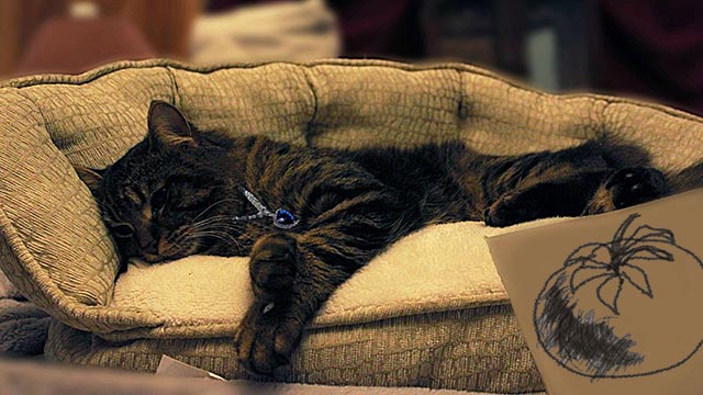 Artwork: Rose the Cat with Tomato Still Life by Jeremy’s daughter