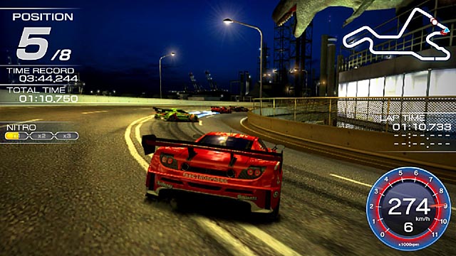 Remarkably, the technique remains compelling nearly twenty years later, stipulating a level of precision which contradicts Ridge Racer’s minimal car collision system and non-adaptive AI. Across the game’s trio of default tracks and three downloadable courses (which include Ridge Racer 7’s Old Central, Sunset Heights and Lost Ruins) the title provides plenty of opportunities for meticulous driving, whether players are competing against Wi-Fi opponents, CPU drones, or Near-gathered ghost data. Beyond advancing Ridge Racer’s nitrous boosting system, the franchise really hasn’t evolved, leaving detractors better off piloting Wipeout 2048’s craft.
