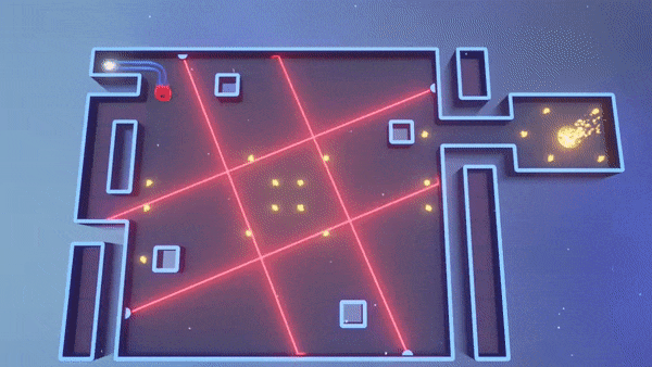 Later, lasers are added to the equation, with Ballhalla showing a fondness for having multiple beams moving in flawless synchronization. Sometimes you’ll have to scoot to a small space where they avoid intersection. In other instances, you’ll have to take cover behind an environmental object, endowing the stage with a stealthy feel. Another notable hazard are giant, wireframe balls capable of crushing you. As with many of Ballhalla’s dangers, they are also useful, allowing you to sneak past a searing laser as they temporarily block the beam for you.