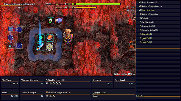 Sure, injecting a bit of stealthy gameplay is nearly a gaming cliché at this point. But the developers manage to make sure it doesn’t feel completely stale within Shiren’s ancillary outings. Likewise, new wrinkles are gradually rolled out across the main campaign and through substantial supplementary treks, ensuring that Shiren remains engaging.