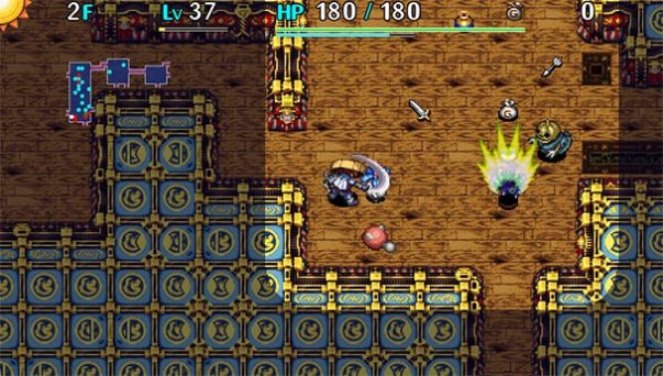 Like any Rogue-like, the punishment for perishing is brutal, potentially transforming a rollicking run at the Towers into an impulse to throw your Vita across the room. Early on, the odds are stacked in your favor. Spike-Chunsoft offers two types of tutorials, with a town NPC extending interactive training, while a preliminary dungeon giving a second explanation of the game’s mechanics. While the in-game lessons seem comprehensive, there hardly hamper the feeling of discovery. Survive, and you’ll experiment with a large variety of items that all seem to have some kind of side-effect, like expanding your HP limit or the size of your stomach. As action often have unforeseen consequences, success in Shiren is not just about minimizing risk, but also testing out each article when you have a transitory moment of safety.