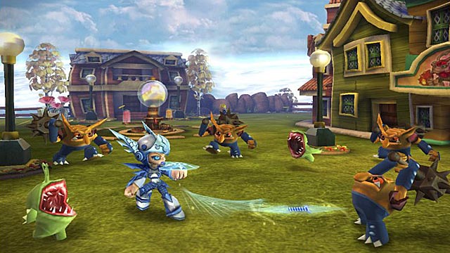 Essentially, Skylanders Giants core play mechanics remains unchanged. The title’s levels are still teeming with destructible objects, each holding a bit of in-game currency, much like the game’s collection of foes. Breezy puzzles complement the combat, tasking players with locating keys to open gates or pushing animals to create makeshift walkways. Although jump pads allow characters to access elevated areas, Skylanders still lack the ability to leap, which may seem a bit limiting for fans of action role-playing games like Champions of Norrath and Baldur’s Gate: Dark Alliance. The upside is that unlike the LEGO franchise, Skylanders Giants is free of the conundrums than often bewilder younger participants.