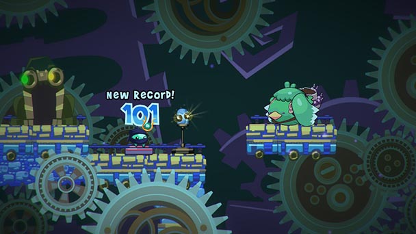 While the main campaign is situated on a hub overworld, players can also the map to face an elevated level of challenge in So Many Me’s Chrono Castle, which raises the difficulty to nerve-rattling levels. The hub is also useful for completionists, since each of the game’s stage hold a trio of artifacts that gamers might not find on their first playthrough. These elements are especially interesting, extending optional variations like adding a flip to your jump or transforming normal enemies into gun-toting bullies. Rounding out the title’s supplements are collectable accessories which allow you to customize the appearance of each Me in amusing ways.