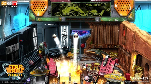 When 2007’s Pinball FX was released for the Xbox 360, critics had a common stickling point: the steel-ball simulation failed to recreate actual machines. Although Zen Studios has yet to fulfill that wish, over the years the developer has offered a commendable concession. From the creation of Street Fighter II and Ninja Gaiden-themed tables to designs based around Plants vs. Zombies as well as Marvel Comic superheroes, digital downloads has brought a number of notable IPs to both Pinball FX 2 and Zen Pinball 2. The release of Star Wars Pinball for the 360 and PlayStation 3 sustains Zen’s efforts- delivering a pleasing collection of tables based around Lucas’ recently bequeathed legacy.