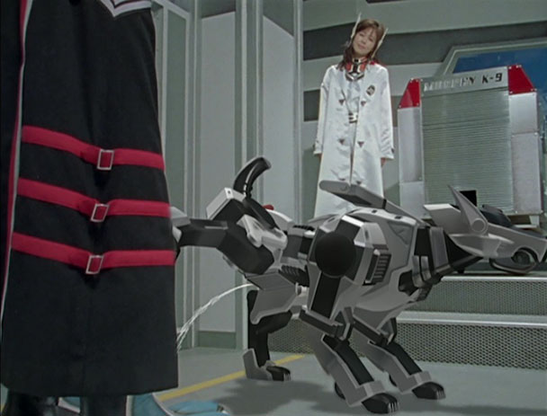 Despite the lack of a protracted plotline, Dekaranger succeeds in single-episode storytelling. The inaugural episode introduces viewers to Ban “DekaRed” Akaza, a rookie cop who just received a promotion after running a criminal thief off the road. He’s rewarded by a transfer to the Earth Division of the Special Police Dekaranger (or SPD), where he teams up with Hojo “DekaBlue” Tomasu, Sen-chan “DekaGreen” Enari, Umeko “DekaPink” Koudou, and Jasmin “DekaYellow” Reimon. Their alienizers-monitoring duties are led by an Anubian chief named Doggie Kruger, while Swan Shiratori serves as the team scientist, mentor, and resident mech repair lead.