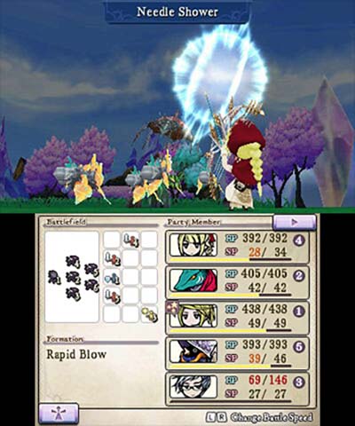 Save for Masashi Hamauzu’s multiplicity of melodic accompaniments, The Alliance Alive aesthetics are a bit utilitarian. While most will be fined with the chibi characters, the lack of voice and limited facial expressions undermines impact, while the limited use of stereoscopic functionality is curious. On the upside, the use of a watercolor-esque palette and environmental variety across the five realms make up for a presentation that doesn’t relish detail. While The Alliance Alive isn’t a visual stunner, it’s rarely unattractive, merely uninspired.