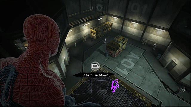 From these elevated posts, Spider-Man is able to get the drop on an oblivious foe, recalling Batman: Arkham Asylum’s surreptitious ambushes. Once descended on a group on enemies, The Amazing Spider-Man echoes the Dark Knight’s pugilistic confrontations, with well-timed button taps instigating wildly fluid combos or satisfying reversals. Along with Spidey’s Web Sense to warn of imminent attacks and the requirement to thwart reinforced opponents, the game fisticuffs may be too familiar to players who have completed Arkham Asylum, Arkham City and Captain America: Super Soldier. While the game’s boss sequences are typically involving, with the web slinger exploiting a raised rival’s weaknesses, they are not free of control impediment. The game’s first showdown, which tasks players with gumming up the leg joints of a giant spider-mech, had me Web Rushing right past the glowing vulnerable bits and directly into danger. Likewise, wall crawling can be disorienting especially when players are skulking across ceilings.