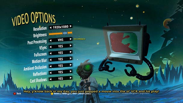 On PC, The Deadly Tower of Monsters is a component performer, flaunting foliage that looks deliberately plastic and character models that purposely change into puppets to mimic the low-budget feel of a drive-in cinema. Save for the aforementioned drop in framerate, the game is a solid performer, exhibiting elevated draw distances and skillful texturing. Aurally, the title perfectly channels the antiquated sounds of 70’s cinema and television, with at least one song that sounds like a collaboration between the composers of Flash Gordon and the Six Million Dollar Man.