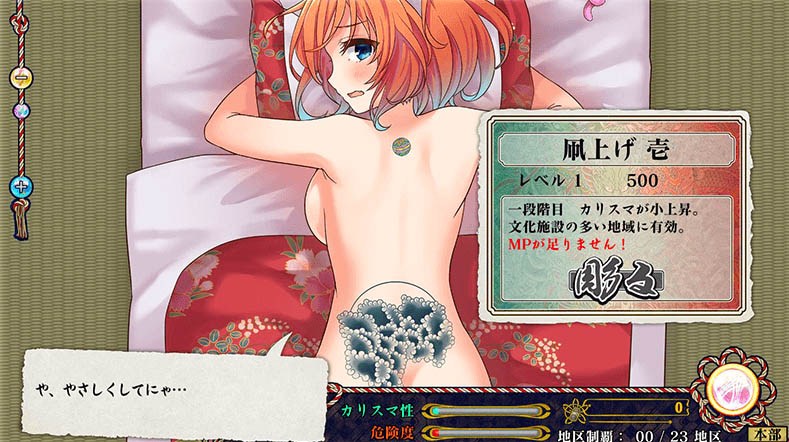 When you’re not surveying the game map, you’ll be looking at each the backside of each maiden or chibi characters rolling dice. The former permits players to boost their influence. Not only does each tattoo or fill cover a section of the protagonist’s posterior, but also is accompanied by a stat boost, which do things like make it easier to recruit clansman or lower the level of opposition in commercial zones. Pleasingly, completing the entire collection of tats fills in your girl’s back, endowing the budding ruler’s backside with a collection of items drawn from Japanese folklore. Sonically, Tattoo Girls’ main theme is stately and filled with a melody culled from traditional instruments. But sadly, it repeats with distressing frequency.