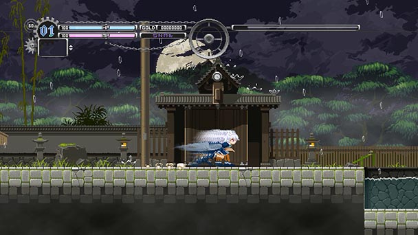 Much of Luna Night’s success steams from the feeling of raw power contributed by protagonist Sakuya Izayoi. Dressed in frilly maid attire, she might seem like an unassuming combatant for those unfamiliar with Touhou history. But diehard fans might remember her debut as an imposing boss in Embodiment of Scarlet Devil. Similarly, she’s a real threat here, throwing daggers with the kind of speed and range to make a Belmont envious. Feather the attack button and Sakuya lets loose with a barrage that can quickly decimate a malicious tanuki or floating spirit. Sure, throwing in regulated by a magic meter, but save for the concluding boss battle, running short on firepower is only an issue during the concluding boss battle.