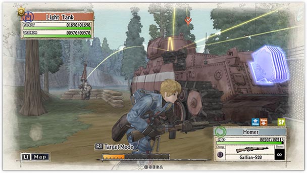 But despite the slightly hackneyed set-up of humble citizens prodded into conflict by a force of encroaching imperials, Valkyria Chronicles provides poignancy throughout its plotline. As a refreshing alternative to the jingoism of Call of Duty, Battlefield, and Tom Clancy titles, the storyline confirms the virtue of pacifism. Unlike the obligatory sense of victory which typically complements the closing credits in Western games, Chronicles demonstrates the persistent lament of loss amidst warfare. From touching on ethnic cleansing to racially disharmony, Chronicles doesn’t shy away from tackling more taboo topics, revealing the repercussions of bitter conflict. Smartly, the writers prohibit the proceedings from becoming too melancholic; beyond an emotive love story, the inclusion of a painterly visual style, muted palette, and Hitoshi Sakimoto’s emotive score endows Valkyria Chronicles with a hint of sanguine distinction. Oh, and there’s also a winged pig named Hans.