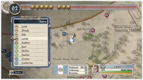 A few battles into the eighteen-chapter campaign, Valkyria Chronicles reveals its virtues by offering open-ended missions for your five troop types. Although success is easier with particular types of approaches, especially when you have a tank at your disposal, the title never forces you into a particular play style. Instead, you’re gently goaded toward promoting troop synergy by positioning snipers in elevated positions watch over your rocket-carrying lancers or having foot soldiers make sure enemies don’t try to converge behind you. But beyond this rock-scissors-paper approach, gamers can develop their own techniques with Valkyria’s ever-expanding toolset. Since players can save after each turn, there’s room for experimentation during the forty-minute forays. And you’ll probably want to take advantage of checkpointing, between hidden enemies, robust bosses, and foes than can one-shot your prized party member.