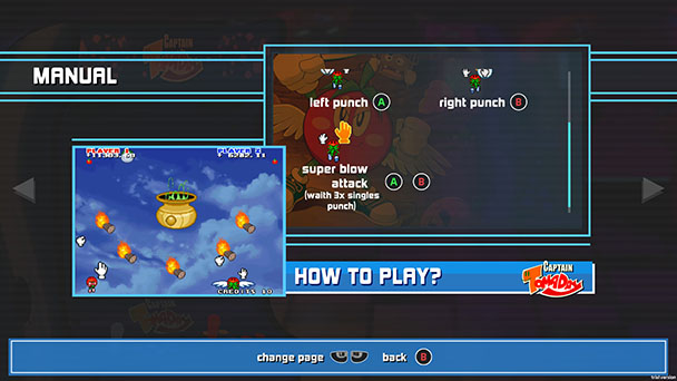Rounding out the collection is the wonderfully peculiar Captain Tomaday. In this vertically scrolling STG, you play as a mutant flying tomato, with two buttons controlling the Captain’s fists. You can hold both buttons for a steady succession of detached punches, filling the skies with a flurry of white gloves. Alternatively, you can let one of your hands power up by not firing it for a few seconds. Once you fire, you’ll get an amplified shot that can mow down multiple enemies. With power-up juggling and cute visuals, Tomaday doesn’t teel far removed from Konami’s TwinBee series. The sole downside is that occasional surges of slowdown can impair play.