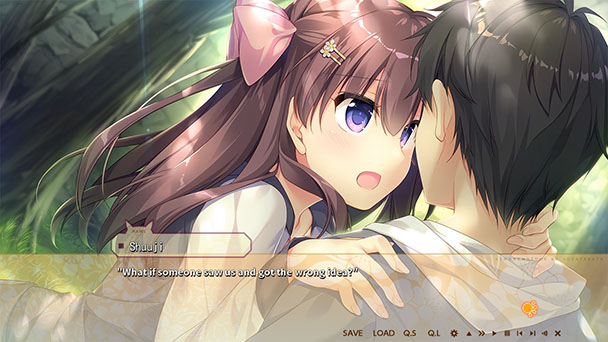 Aesthetically, Wolf Girl is an unqualified success. There’s often a schism in the art style between rural settings and building interiors, with the former a bit more impression while habitats reveal detail. Motomiya Mitsuki’s character portraits lean toward the later, with each cast member impeccably drawn and expressing emotion through a multitude of facial expressions and graceful animations. Occasionally, sprites leap out of frame to signal closeness, which is a remarkable effect that distinguishes Wolf Girl from many of its peers.